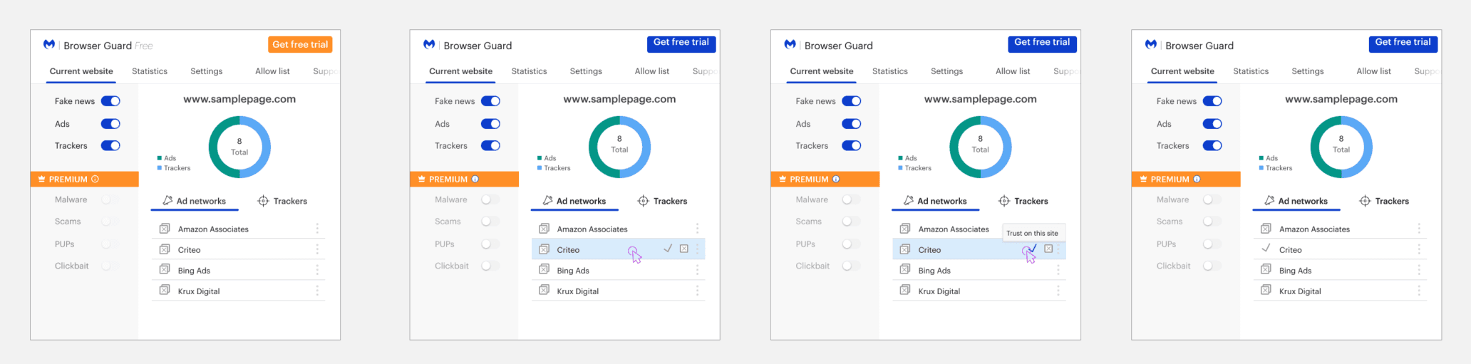 To reduce installation barriers and support broader distribution, Browser Guard was repositioned as a free user acquisition tool designed to encourage conversion to Malwarebytes 4.